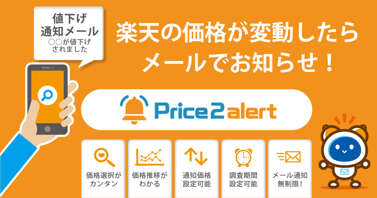 楽天市場の場合、price2alertのサイトにアクセスし、メールアドレスを登録すると、商品の値動きのたびに通知してくれる。