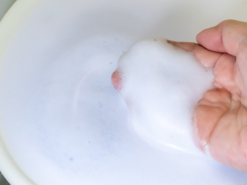 タブレットをお湯に入れると、シュワシュワ〜ッと溶け始め、モコモコとキメの細かい泡が増えていく。