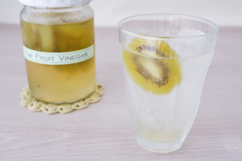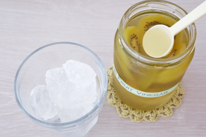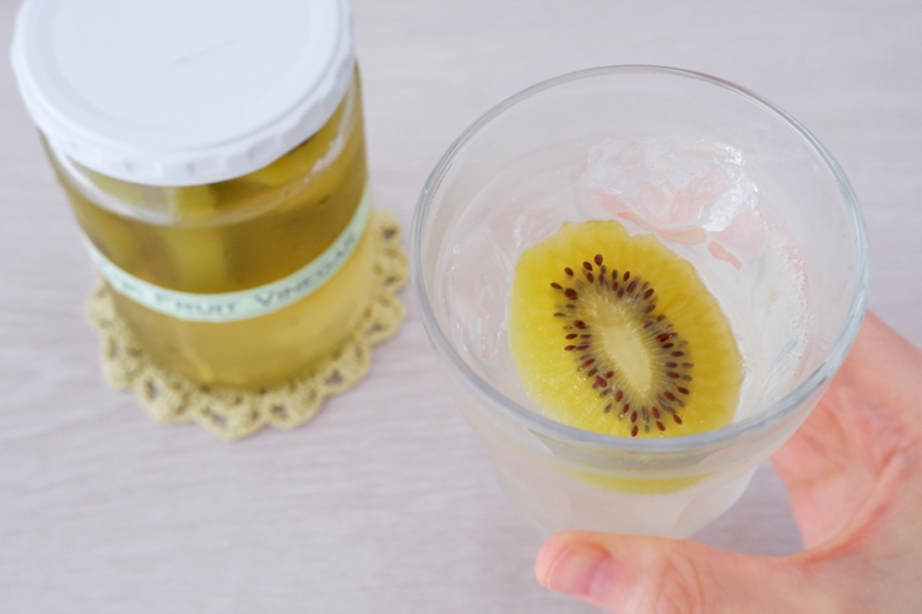 こうして完成したキウイ酢。もちろん原液のままでは刺激が強いので、何かで割って飲んだり、調理に活用したりしていきましょう。