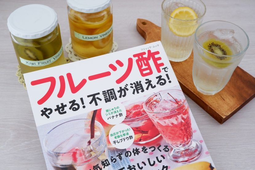 書籍では他にも、バナナ酢、ミカン酢、ブルーベリー酢、サクランボ酢、干しブドウ酢、いちご酢、酢りんご、パイン酢などのフルーツ酢が紹介されています。番外編として、プチトマト酢やゴーヤ酢などベジタブル酢も紹介されていますよ。
