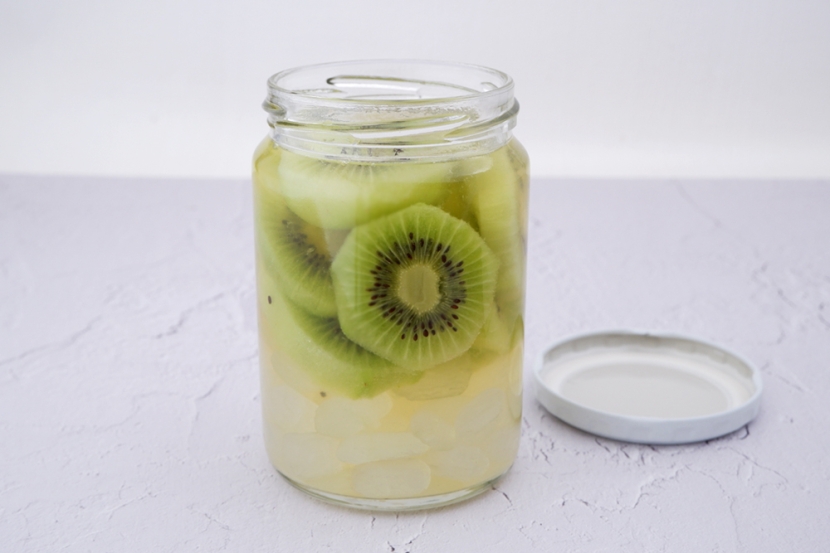 作り方はとにかく簡単! キウイフルーツをよく洗って皮をむき、1cm程度の輪切りにします。ガラス製の保存瓶に氷砂糖と一緒にいれて、リンゴ酢を注ぎ入れましょう。