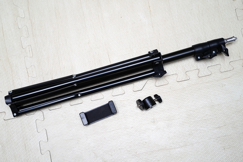 ライトスタンド+雲台、スマートフォンホルダーで、よくここまでコストダウンできたものだと感心するしかありません。また、ライトスタンドは写真業界では、非常にありふれたアイテムなので、コストダウン以外特段奇をてらった部分のない「スチール製自立式一脚(1.5m)」が安心して使用できます。