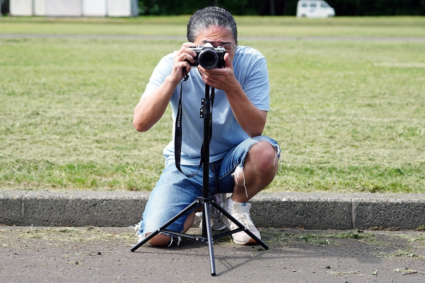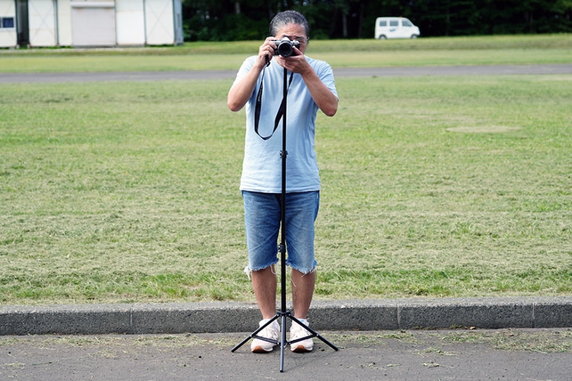 立った姿勢で撮影する際には「スチール製自立式一脚(1.5m)」の方が快適です。