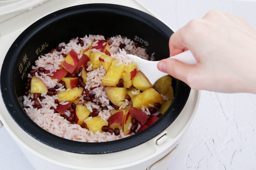 甘くていい香り漂うキッチン、「さつまいもお赤飯」は彩り華やか