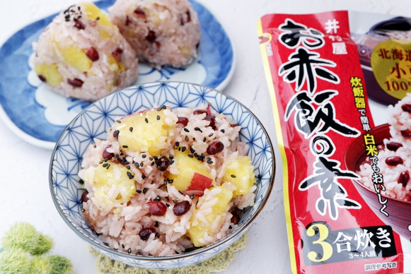 さつまいもの甘さと小豆の風味がおいしく、彩りも美しい「さつまいもお赤飯」を作ってみましょう。これも『お赤飯の素』を使うからこそ簡単に仕上がります。
