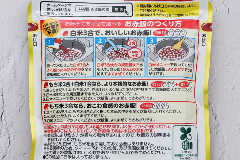 この商品のイチオシポイントは、何と言っても白米と一緒に炊飯器で炊くだけでおいしいお赤飯ができる点にあります。小豆を煮たり、煮汁と分けたりする必要は一切ありません。白米と混ぜるだけだから、混ぜご飯の素と同じような感覚です。つけ置きも必要ありません。