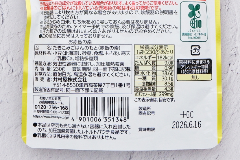 白米ともち米のブレンドですが、もち米だけで作ったようなおいしさです。小豆のホクッとした食感もちょうど良く残っており、風味が全体によく馴染んでいます。さつまいもの甘みも引き立っており、贅沢なおいしさに大満足!
