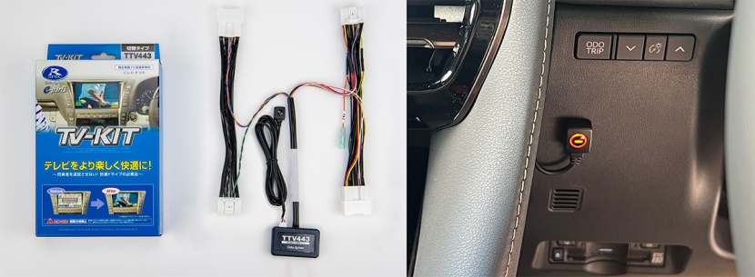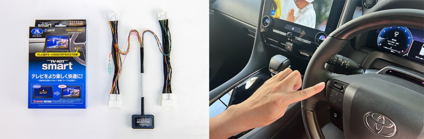 任意の場所に貼り付けできる小型スイッチで、スマートなインストールを実現。スイッチ操作で「ノーマル復帰」と「テレビキットON」を切り替えできる。