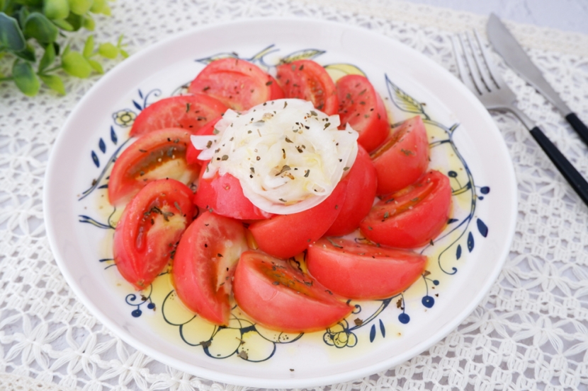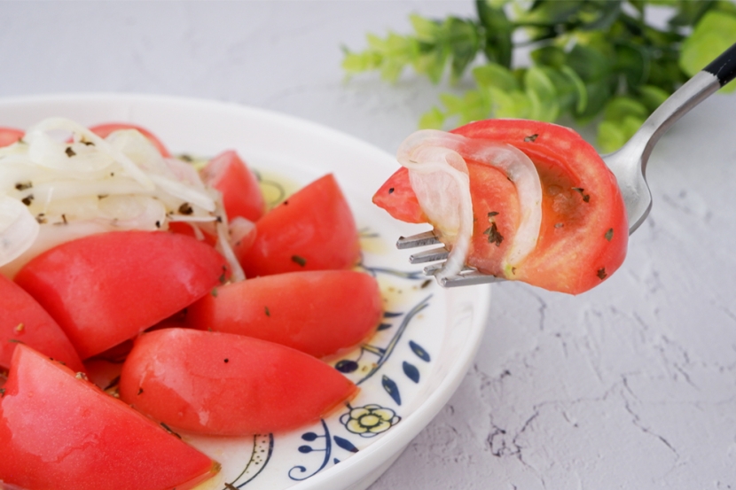 続いては、トマトと合わせて「マリネ風サラダ」を作ってみます。