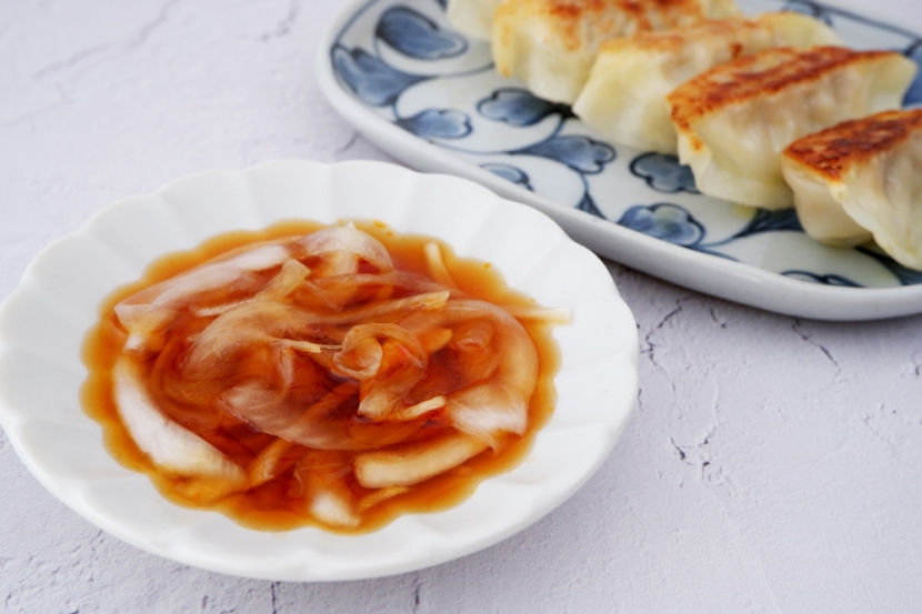 酢のおいしさと玉ねぎの辛みがプラスされて、ワンランク上の餃子ダレになります。餃子の脂っぽさをさっぱりとまとめてくれるのがいいですね。