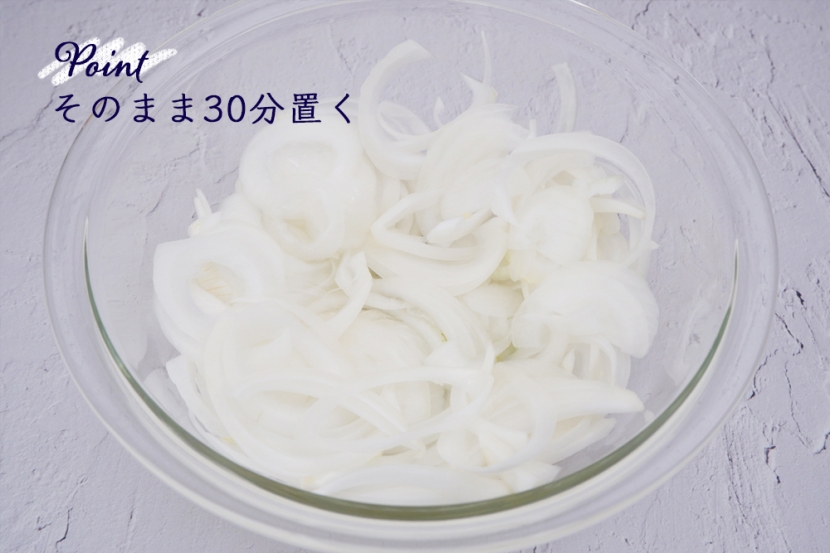 そして、次のポイントがココ! スライスした玉ねぎを30分~1時間、そのまま室温に置いておきます。こうすることで「チオスルフィネート」という成分が作られるのだとか。この成分には、血糖低下作用や血液サラサラ作用があることが分かっています。