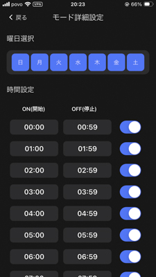 圧巻なのは1日の時間帯の中で細かく起動・停止をタイマー設定できること。