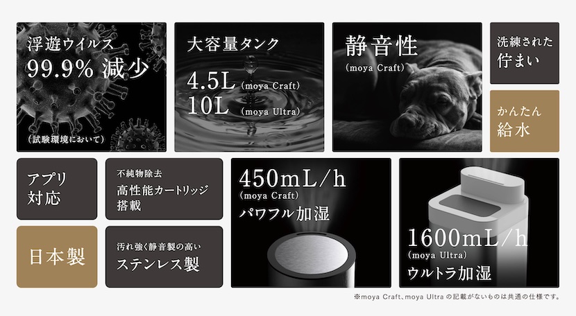 薬剤フリー、水だけでウイルスを減少させる、子どもやペットにも安心な日本製加湿器「moya(モヤ)」の技術革新