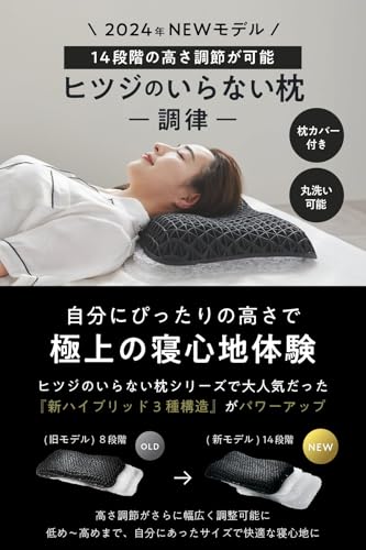 『ヒツジのいらない枕 ー調律ー』(550×350×100/115mm・約2.3kg・税込19,800円・2024年10月1日発売)の最大の特徴は、前モデルの8段階から大幅にアップグレードされた14段階の高さ調節機能です。この細やかな調整を可能にしているのが、独自の4層構造テクノロジーです。