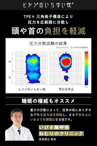 内部構造にも工夫があります。一般的なTPE製品が六角形のハニカム構造を採用しているのに対し、本製品は三角格子構造を採用。しかも上層は小さめの三角で体圧分散を高め、下層は大きめの三角でしっかり支えるという二層構造になっているのです。この複合的な弾力が、柔らかいのに反発力もあるという不思議な感覚を生み出し、しっかりした反発力で頭の重量を支えながらも柔らかく感じるマジカルな寝心地を実現しています。