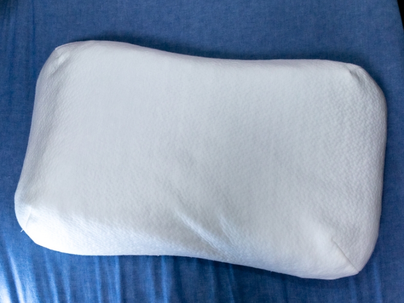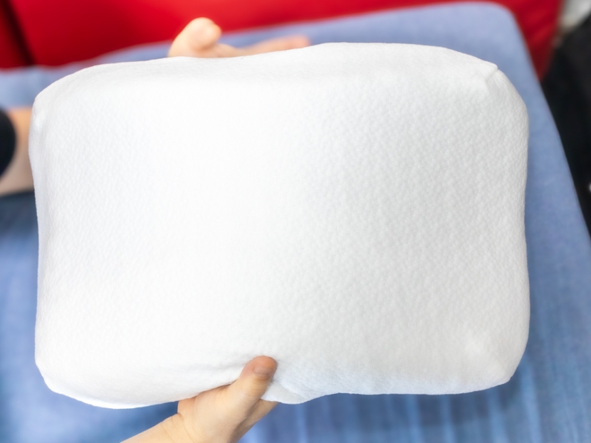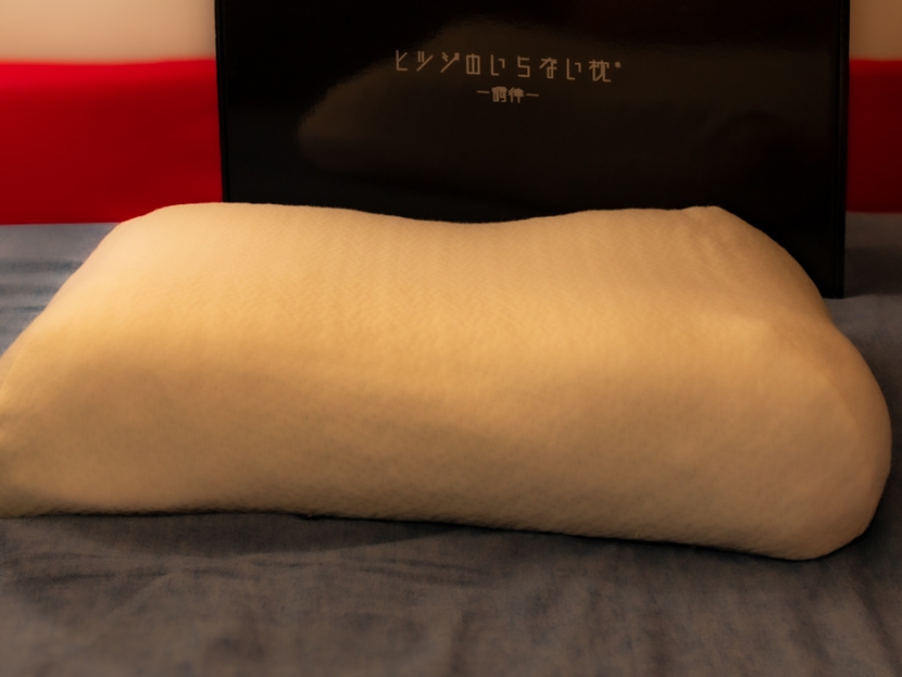 もちろんすべて良いところばかりではありません。一番驚いたのはその重さです。普通の枕のつもりで指先や片手で持とうとすると、どこかしらの関節がグキッとなりそうな重量感があります。約2.3kgですから、MacBook Proなみのずっしり感で、油断は禁物です。ただし一度ベッドに置くと、そう簡単にズレないというメリットにもなります。