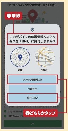 ⑨位置情報のアクセスを許可するか聞かれたら、「アプリの使用時のみ」もしくは「許可しない」をタップ。どちらをタップしても問題ない。