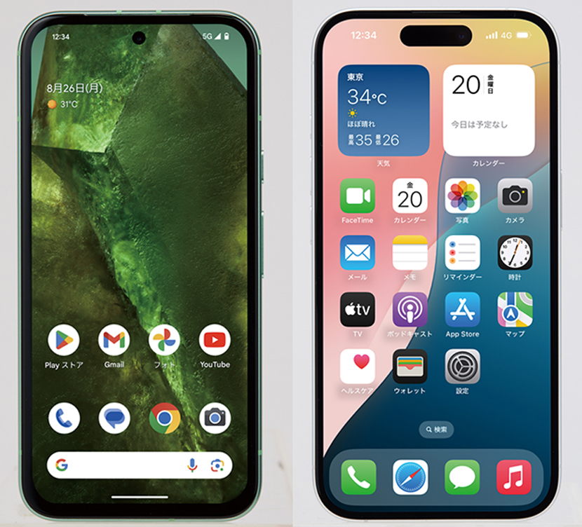 スマホは大きく分けて2種類。アンドロイド(Android/写真左)とアイフォーン(iPhone/写真右)