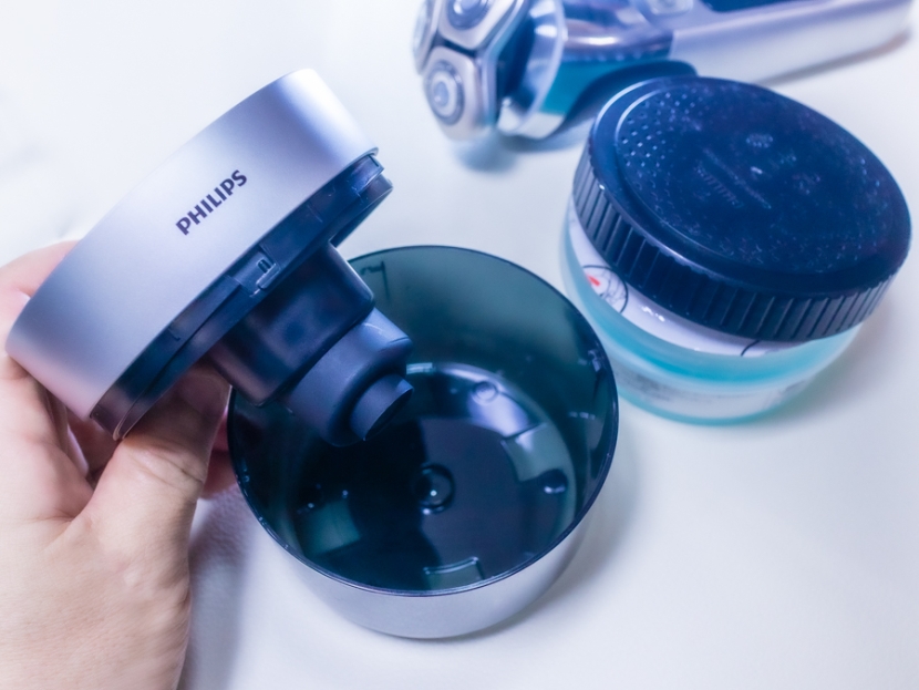 今回使用したのは「XP9404/21」というトリマー、セミハードなプレミアムポーチ、クイッククリーンポッド(自動洗浄器)という構成ですが、シェーバー史上初のシェービングヘッドへのUV照射による除菌が可能なが可能なUV充電ケース(XP9405/49、XP9404/49)というよりパワフルな構成もあり。