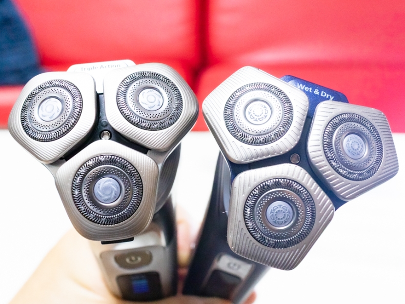 剃り味に直結する部分では、外刃の厚みが10%薄く設計されました。またエリンギのようなフォルムが楽しいフィリップスのシェーバーでしたが、今回はヘッド面積が20%小型化されており、ストレートに近いシンプルで姿勢の良い形状に変わりました。ヘッドが大きすぎると感じていた人には、肌の凹凸に密着しやすくなる大きな変化です。使い勝手は結構変わります。