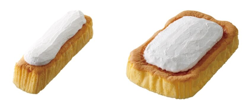 従来品「ふわもち生シフォン」と比較して、総重量を約50%増量。ふわふわ、もっちり食感の生地の上に、北海道産生クリーム入りのなめらかなホイップクリームをのせたシフォンケーキとのこと。ホイップクリームの重みにシフォンケーキは耐えられるのか!?ぜひ確かめたい!