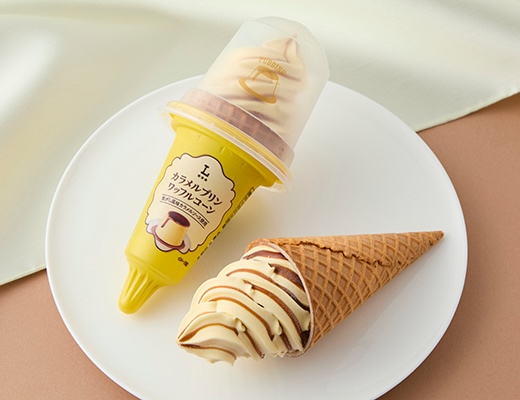 - 【アイス】『カラメルプリンワッフルコーン』税込354円