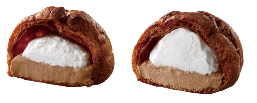従来品「大きなチョコシュー」と比較して、クリーム(チョコクリームとホイップクリーム)を約50%増量。香りの良いチョコクリームとホイップクリームを入れた2層仕立てのシュークリームだそう。中身がたっぷり詰まってそうです!