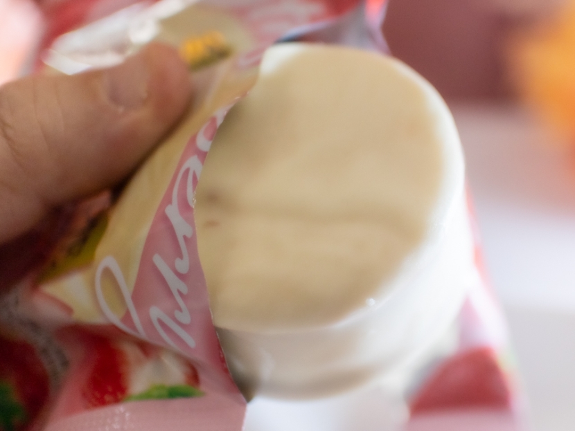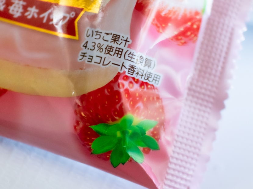 手で割ってみると、ちょっとグチャッとしてしまうくらいソフト。パリパリ感を残したホワイトチョコの間から、おいしそうなピンク色のクリームが大量にはみ出してきます。すごく自然な甘酸っぱい香りがするのはやはり、本物いちご果汁を使用しているからでしょうか。もちろんその縁の下の力持ちとして支えるスポンジもしっとり感抜群で、ケーキ感を盛り上げてくれます。