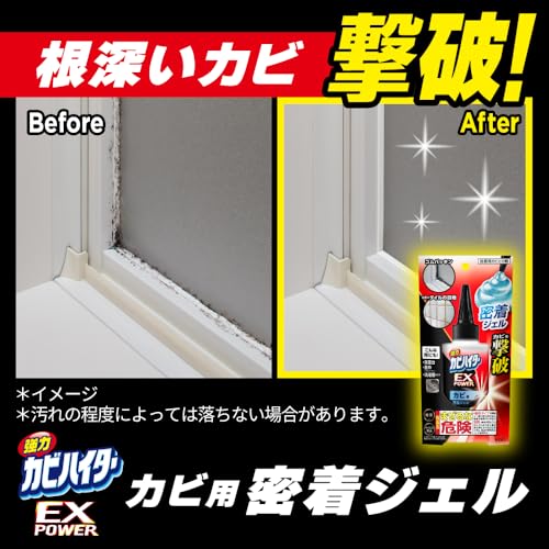 スプレータイプのカビ退治剤も良いのですが、揮発してしまうと効果半減。しかも吸い込んでしまうリスクも無視できません。なので筆者はこの『強力カビハイター EXPOWER カビ用密着ジェル』のような高粘度ジェルがお気に入りです。
