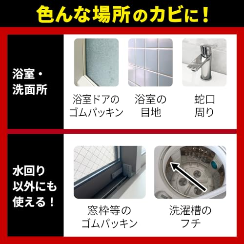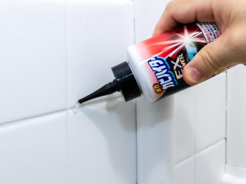 実際に使ってみても、透明なジェルが垂れにくく、カビにピタッと密着、カビの根元まで洗浄成分を浸透させる時間を稼いでくれます。マスクはしましたが、塩素系でありながら、ツンとした刺激臭が控えめで使いやすかったです。