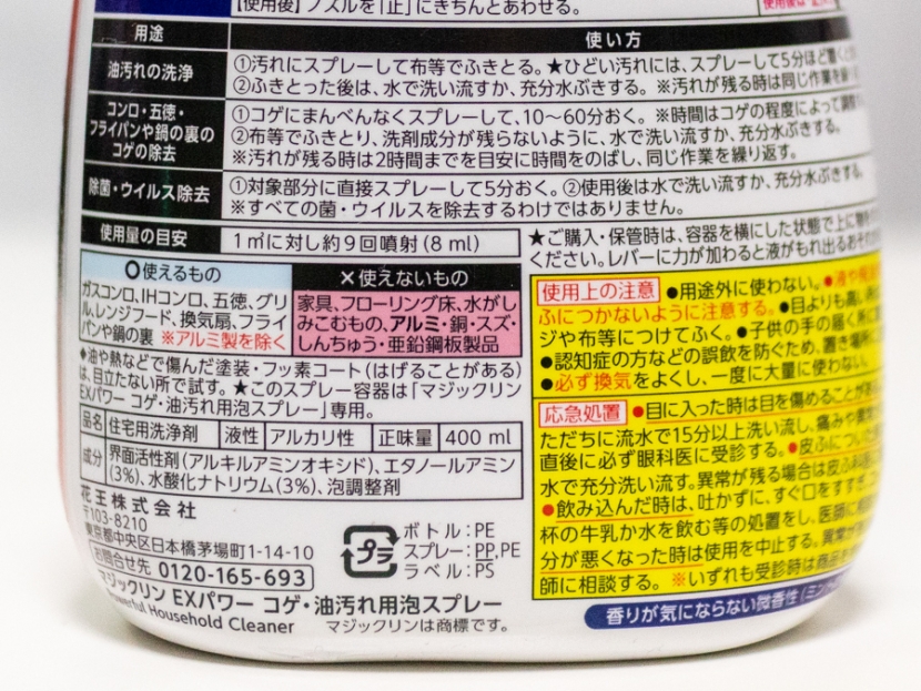 通常の「マジックリン」シリーズと使い分ける場合は、「マジックリン」シリーズを日常使いして、たまってきたしつこい汚れに『マジックリン EXPOWER』シリーズを投入という感じでしょうか。