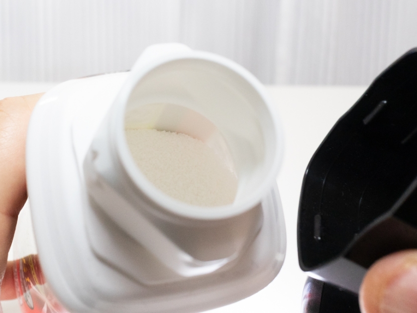 使い方は、水5Lあたりキャップ約1杯(約47g)を溶かし、汚れた物をつけおきします。40℃程度のぬるま湯を使うと効果的とのこと。つけおき後はスポンジなどでなで洗い、よくすすぎます。