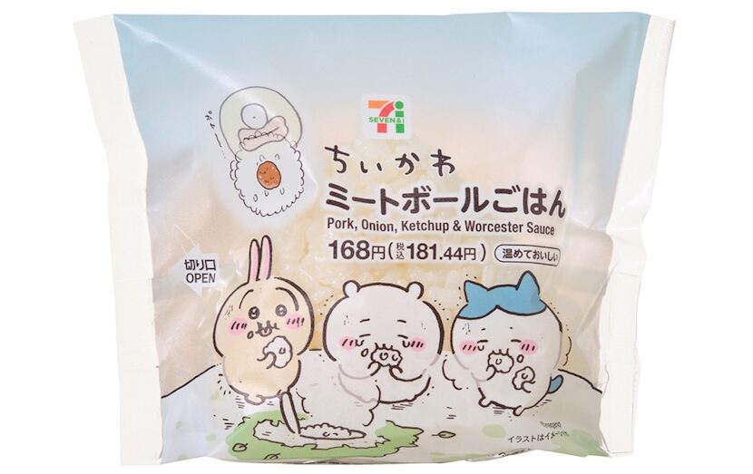 豚肉を使用したミートボールを中具にしたおむすび。思わず手が伸びてしまいそうな「ちいかわ」のキュートなパッケージ入り!