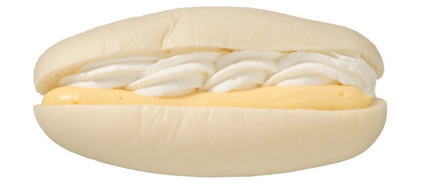 ふんわりしっとりした白いパン生地に、ホイップクリームとカスタードクリームをたっぷり挟んだ「ダブルクリーム」仕立て。