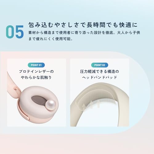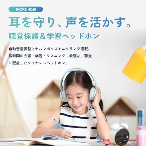キャッチコピーは「耳を守り、声を活かす。聴覚保護&学習ヘッドホン」というものです。自動音量調整とセルフボイスモニタリングを搭載しており、この自動音量調整がWHO基準に準拠しているといいます。