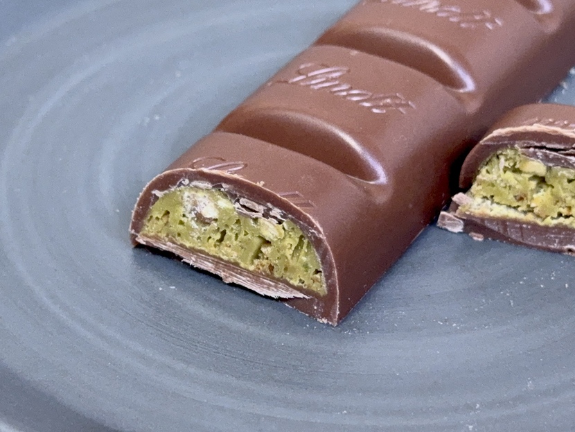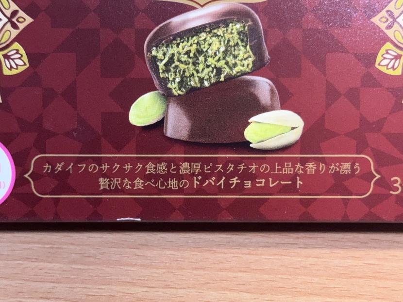 チョコレートの味がほとんどなく、クランチチョコのような味わいにかなり近い。カダイフが味わいの大半を占めている気がする。ひと言で表すなら、チョコ風味のピスタチオクランチと言ったところか。ドバイチョコレートとはおそらく全く違うだろうが、これはこれで楽しめる味だと思う。