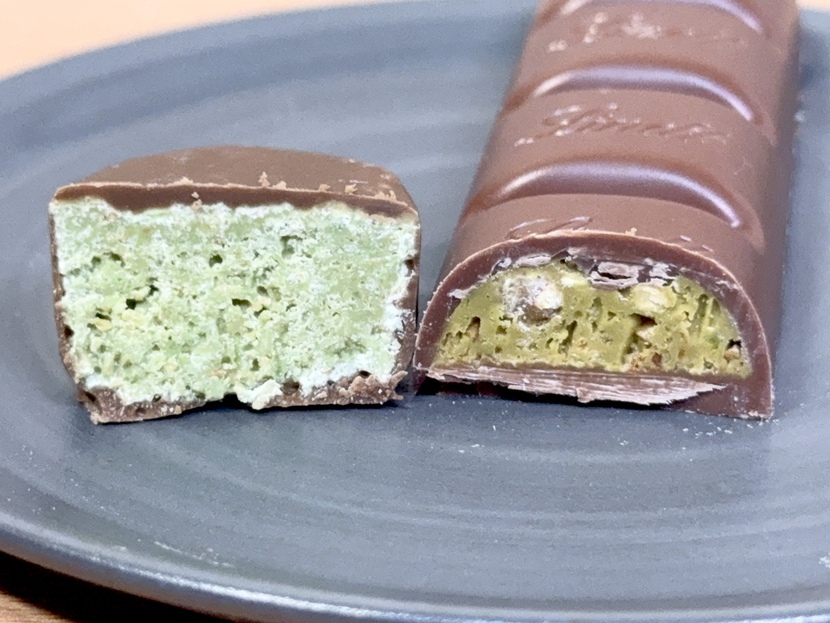 断面を見てみると、先ほどとは違いチョコレートの層が厚い。ピスタチオの色も濃く、とても濃厚そう。