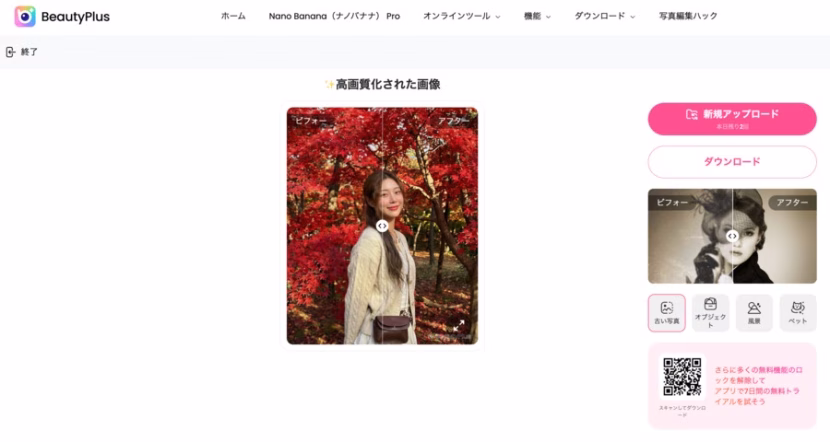 【ステップ1】まずは写真を最高の状態に!BeautyPlusのAI画像高画質化