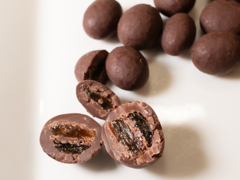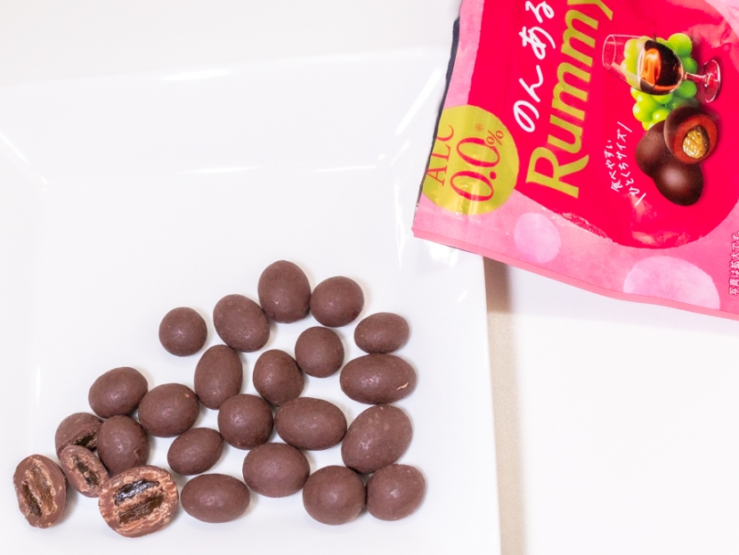 まず『のんあるラミー』から。パウチを開けると、まるくてコロコロしたチョコがお目見え。チョコのいい香りがします。ひとつ口に入れると、ラムの風味がほんのり香り、レーズンのおいしさとチョコレートが合わさって、やさしい味わいでおいしい!