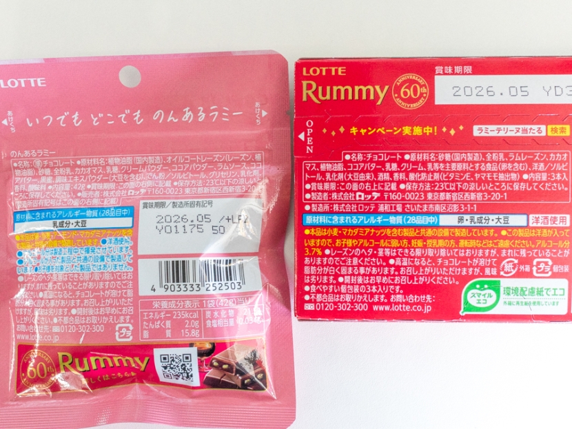 ロッテ『のんあるラミー』(42g入・想定小売価格 税込224円前後・2025年12月16日 全国のコンビニエンスストア・駅売店限定発売)は、あの『ラミー』が「のんある品質」になったという商品で、アルコール分0.05%未満のノンアルコールタイプです。コンセプトは「いつでもどこでも、ラミー気分を味わえる」。
