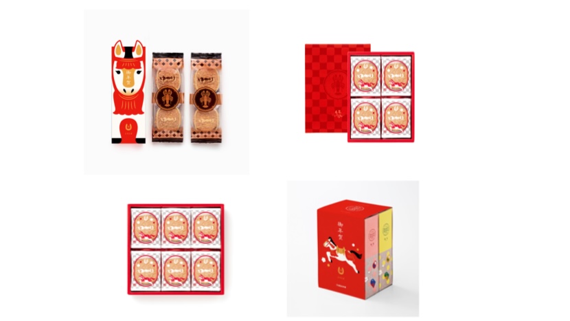 (左上から時計回りに)〈ゆかり〉干支ノ箱[午]、〈ゆかり〉慶ノ箱[午]、〈ゆかり〉慶ノ箱[午]、〈さくさく日記〉[セット]の4種類。