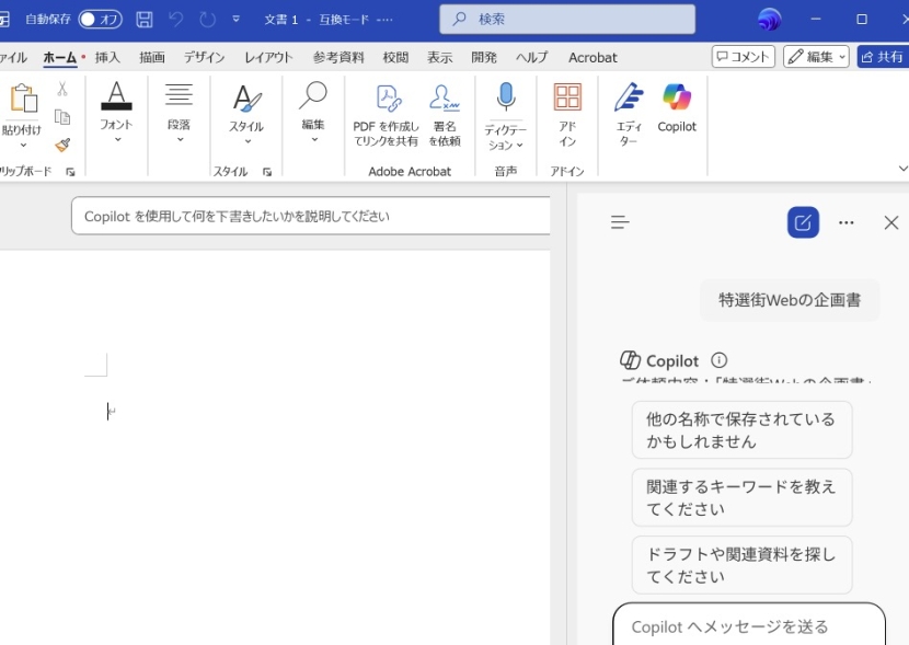 個人で利用する場合、2025年1月からは、『Microsoft 365 Personal』(月額 税込2,130円)と『Microsoft 365 Family』(月額 税込2,740円)にもCopilot機能が追加され、Word、Excel、PowerPointなどのアプリ内でCopilotを利用できるようになりました。月初に60AIクレジットが割り振られる仕組みになりました。1アクションにつき1クレジットが消費されます。
