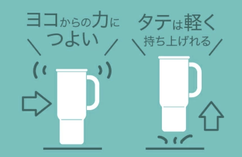 フォルムもタンブラー型を採用し、気軽に持ち運べる設計に。キッチンや洗面所に持っていってサッと給水できるほか、コードレスなのでデスクやベッドサイドなど好きな場所で使えます。ボトムが細くなっていて安定感が気になりましたが、その点もご心配なく。底面に特殊構造の吸盤がついていて、横から押しても倒れない構造になっていました。これなら、ペットがチョンチョンとイタズラしても倒れることはないでしょう。移動したいときは、真上に持ち上げると簡単にスッと外れます。
