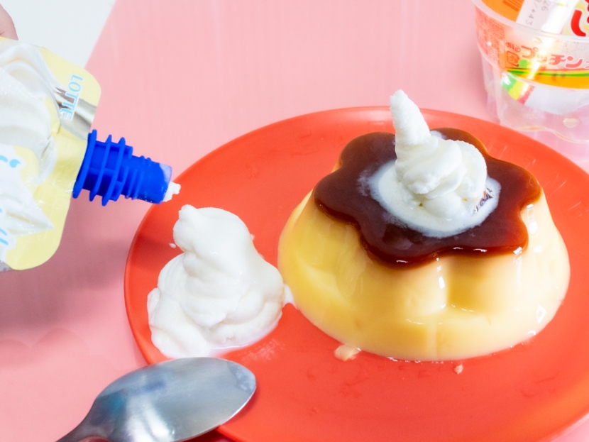 続いてプリンとの組み合わせにも挑戦。公式でアレンジ例として紹介されており、カフェ風のデザートに手軽にアレンジできるというので、「プッチンプリン」でチャレンジしました。
