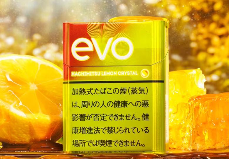 EVOシリーズは現在8銘柄。濃厚レギュラータイプの『エボ・ディープ・レギュラー』、メンソール系の『ブラック・メンソール』『コールド・メンソール』『フレッシュ・ミント』、フレーバー・メンソールの『ベリー・クリスタル』『トロピカル・ベリー・クリスタル』『トロピカル・バナナ・クリスタル』、そして今回紹介する『エボ・ハチミツ・レモン・クリスタル』(1箱20本入・税込550円・2026年1月16日全国発売)です。
