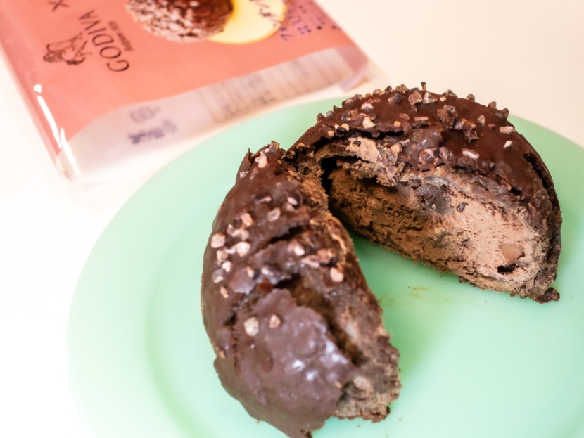 チョコレートづくしのスイーツではありますが、甘さは控えめで食べやすい仕上がりです。外側のクッキー生地の香ばしさ、クリーミーなチョコクリーム、そしてなめらかなチョコソースと、異なる食感と味わいのチョコレートを一度に楽しめるのが魅力的です。コンビニスイーツとは思えない本格的な味わいで、ゴディバのブランド力を感じさせる一品でした。