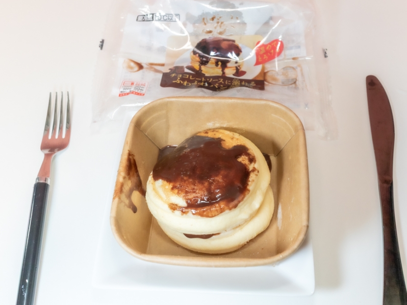 温めることで、中のチョコレートソースが広がり、パンケーキがふわふわの状態になります。