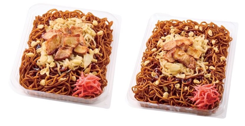 従来品の「大盛ソース焼そば」と比較して、麺重量を約50%増量。ジューシーでコクのある甘めのソースで炒めているそうです。ナチュラルローソンでの発売はなく、約68万食を用意しているとのこと。