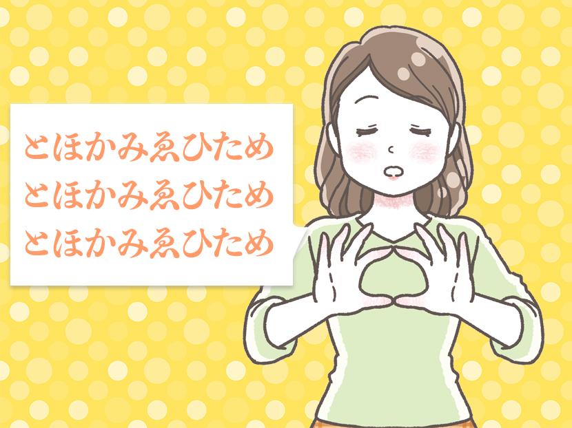 ポイントは、「とほかみゑひため」と唱えるとき、なるべく早口で一気に40回唱えてしまうこと。丁寧に一語一語唱える必要はありません。リラックスしながら、一心に唱えるようにしましょう。