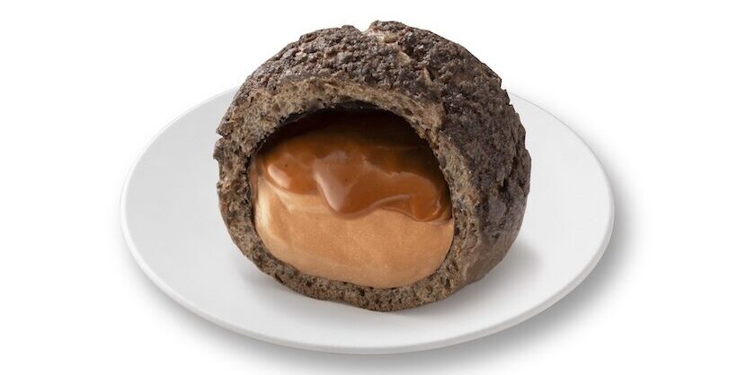 ほろ苦キャラメルソースと濃厚ショコラクリームを、クッキー生地のシューで包んだシュークリーム。重厚な余韻が楽しめる一品。※数量限定